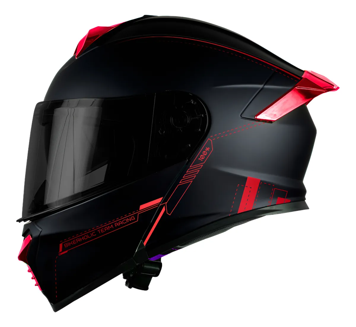 Casco Kov Thunder Racing Abatible Rojo Mica Humo Con Alerón