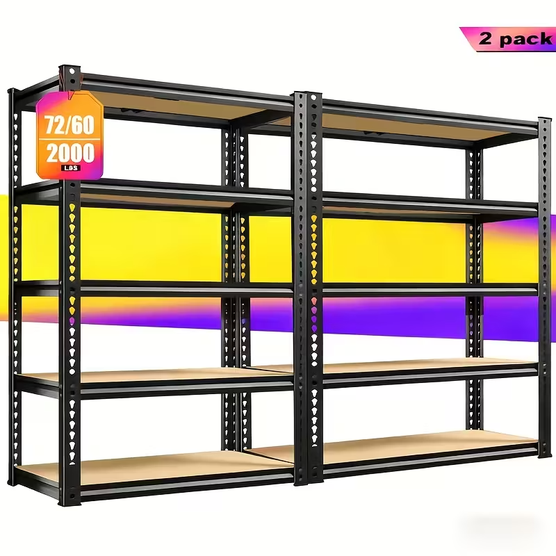 2 Piezas de Estantería Metálica Industrial de Alta Resistencia, Altura Ajustable (60"/72"), Unidad de Estantería con Capacidad de 2000 por Estante, Fácil Montaje, Estantería Independiente para Garaje, Almacén, Hogar y Oficina