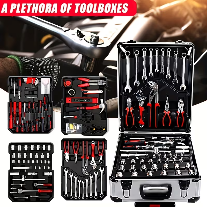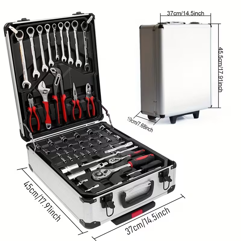 Juego de herramientas de carrito de aluminio de alta resistencia de 799 piezas con herramientas manuales completas - Kit de reparación profesional para mecánicos y para el hogar, juego de herramientas rodantes con almacenamiento organizado, sin batería