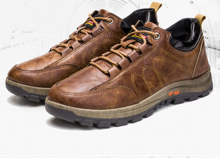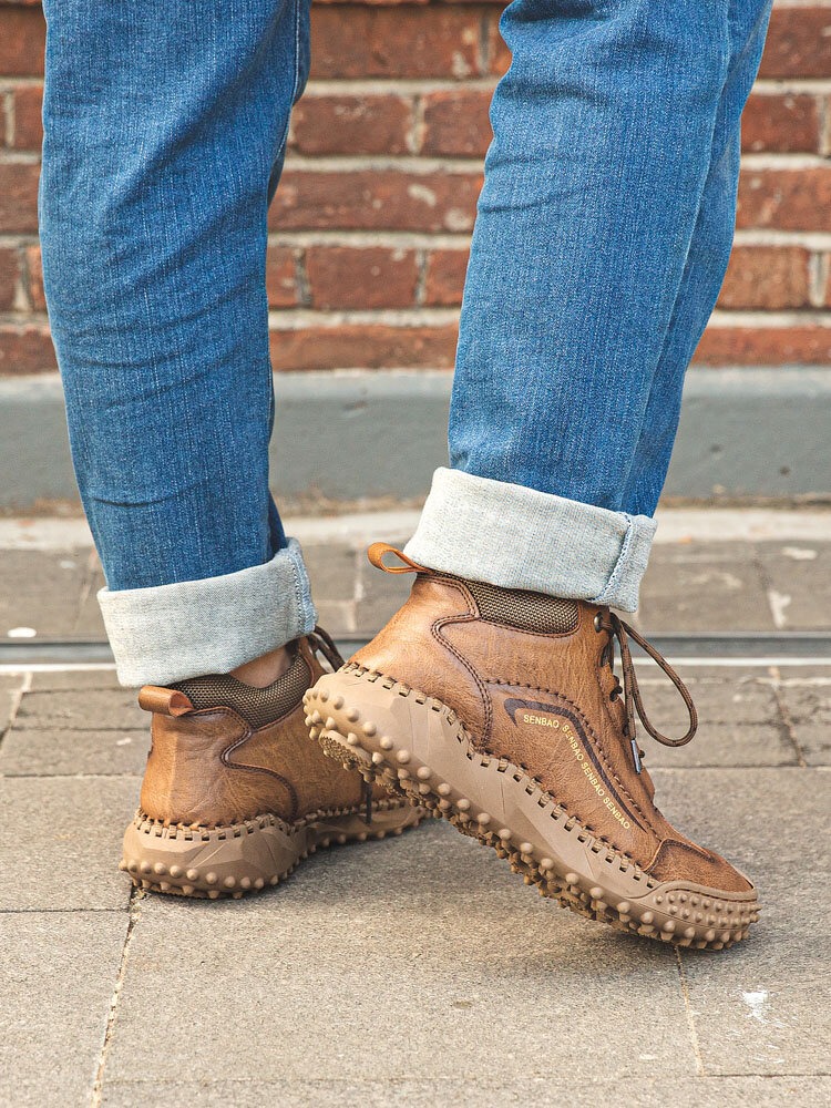 Botas de senderismo al aire libre antideslizantes cómodas de cuero cosido apretado para hombres