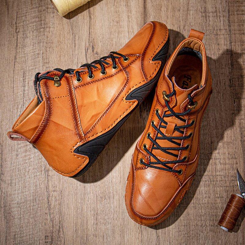 Men Hand Stitching Casual Ankle Leather Boots