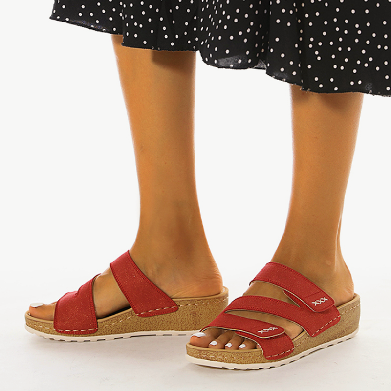 The cushion-like, double-padded memory foam insole is very soft. And the sandal is easy to combine. Don't worry about that.