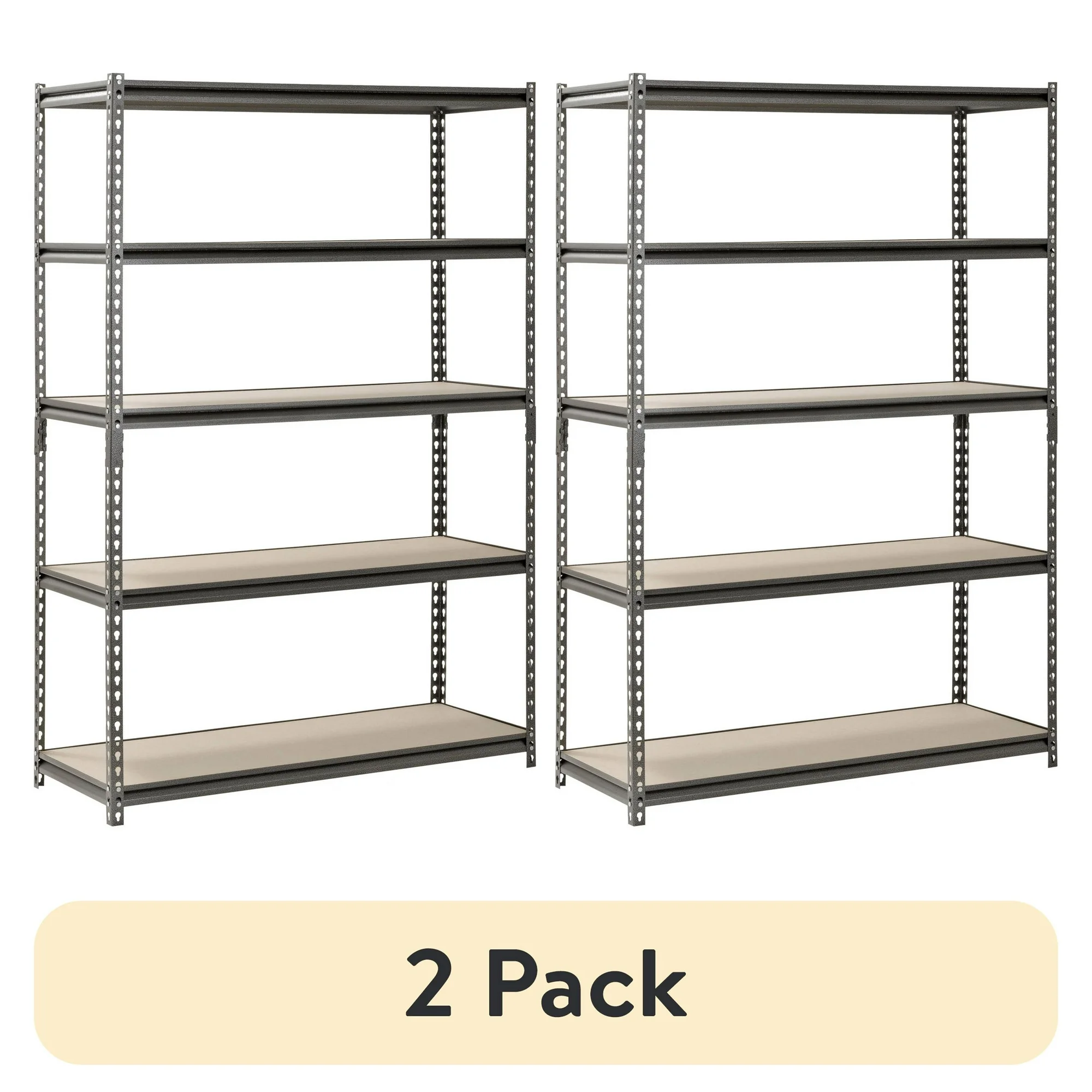 Estante de almacenamiento de acero sin tornillos con 5 estantes ajustables de aglomerado que soportan hasta 1817 kg cuando se distribuyen uniformemente entre todos los estantes.