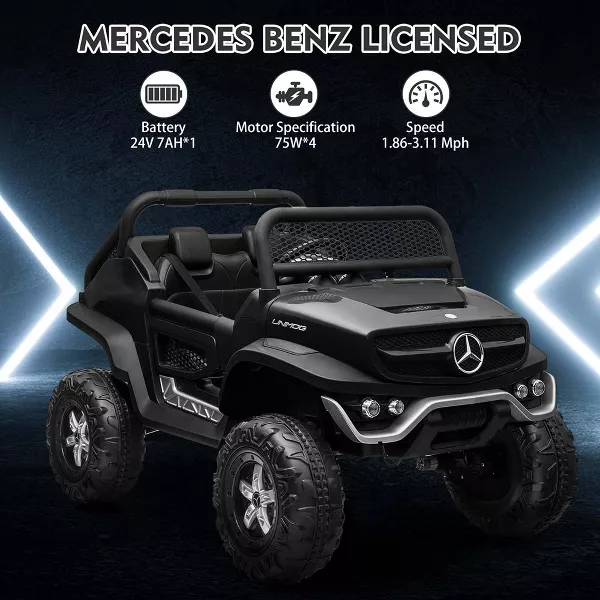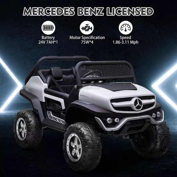 24V Ride On Truck Car for Kids 2 Seater Licensed Mercedes Benz Toddles Electric Car Ride On Toy with Remote Control, Trunk, Battery Display, Spring Suspension, Led Lights, USB&Music