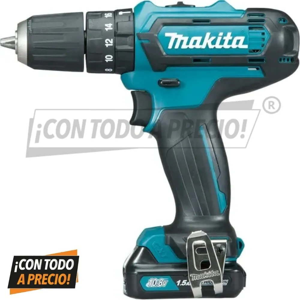 2 Baterías 1.5 Ah BL1016, 2 Puntas Phillips, 2× Clip para cinturón, Cargador DC10WD, Maleta |