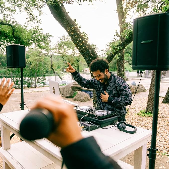 - EL SISTEMA PORTÁTIL PA ESTÁ LISTO PARA TOCAR DONDE SEA. Con un peso de 14.4 lb, este sistema PA portátil es una libra más ligero que el original y cuenta con un asa de transporte ergonómica que lo hace perfecto para la música en movimiento.