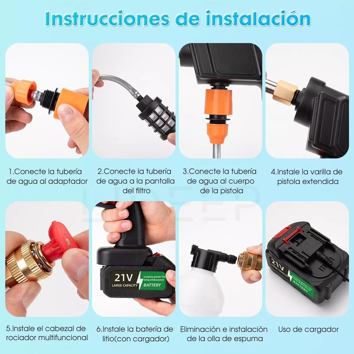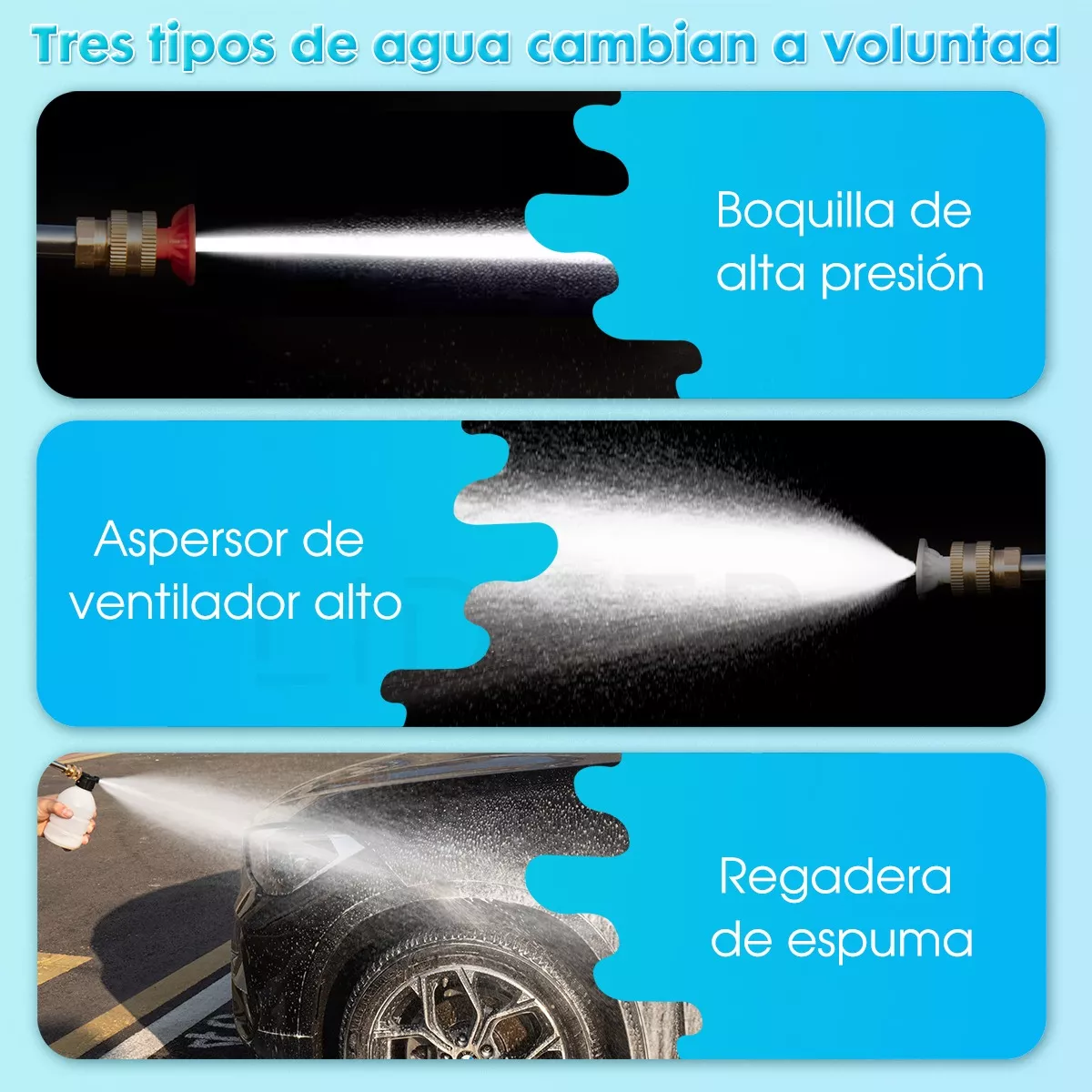 Equipada con dos boquillas y una botella de espuma, ofrece modos de limpieza que se ajustan a tus necesidades: desde un rociado directo hasta un abanico de agua y la aplicación de espuma a alta presión.