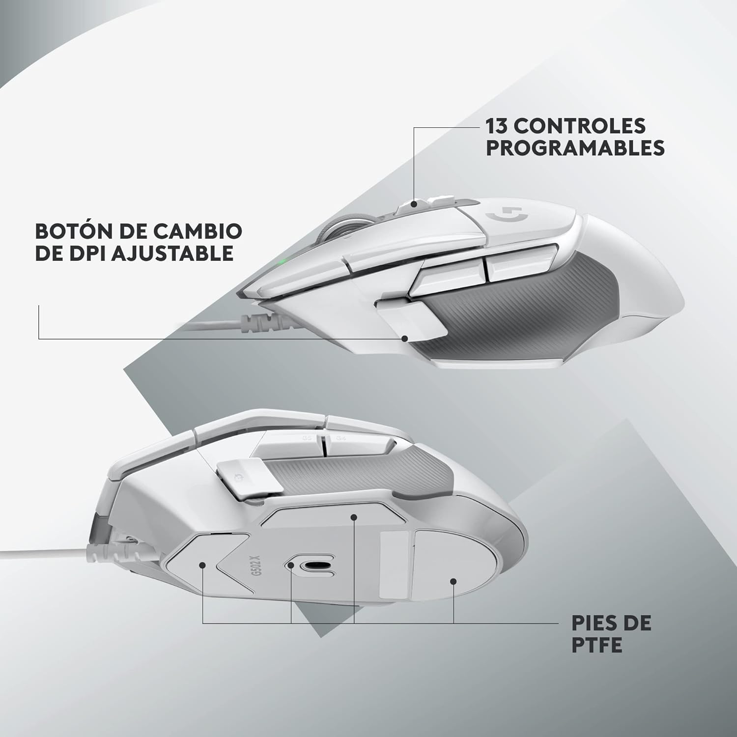 - Icono renovado: el mouse con cable para gaming G502 X fue re-imaginado y re-diseñado, basándose en el legado del diseño del popular G502, con las tecnologías de gaming más innovadoras