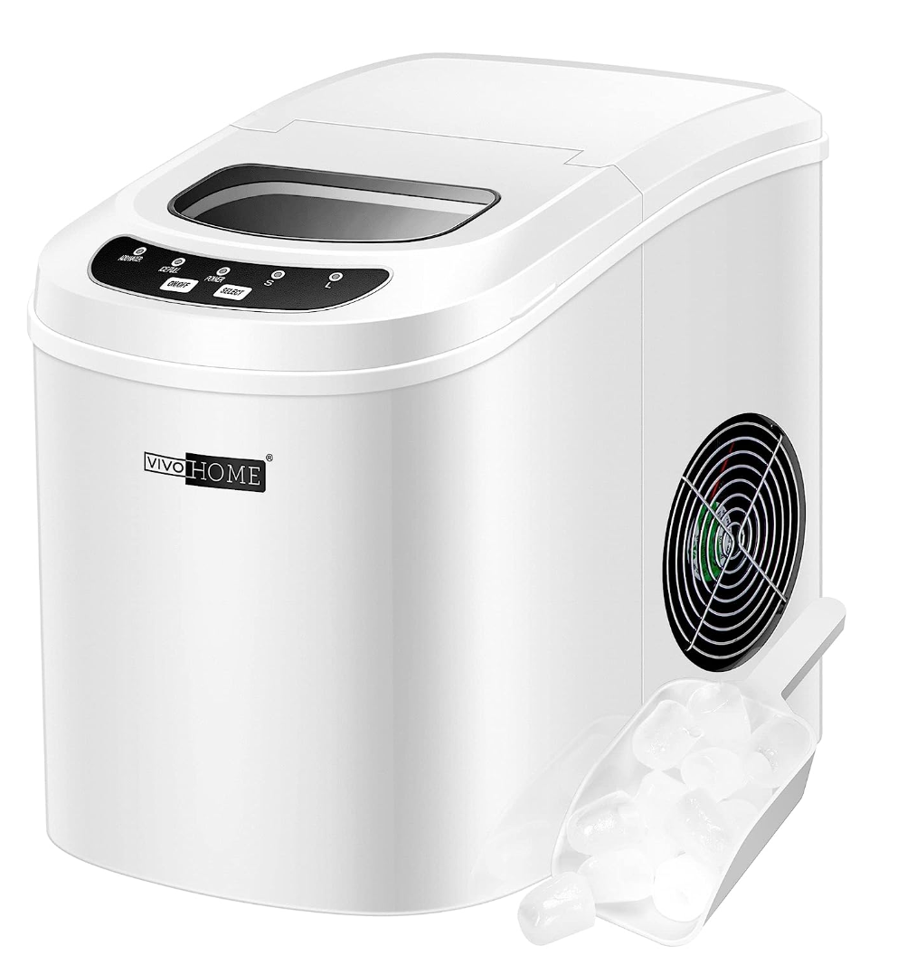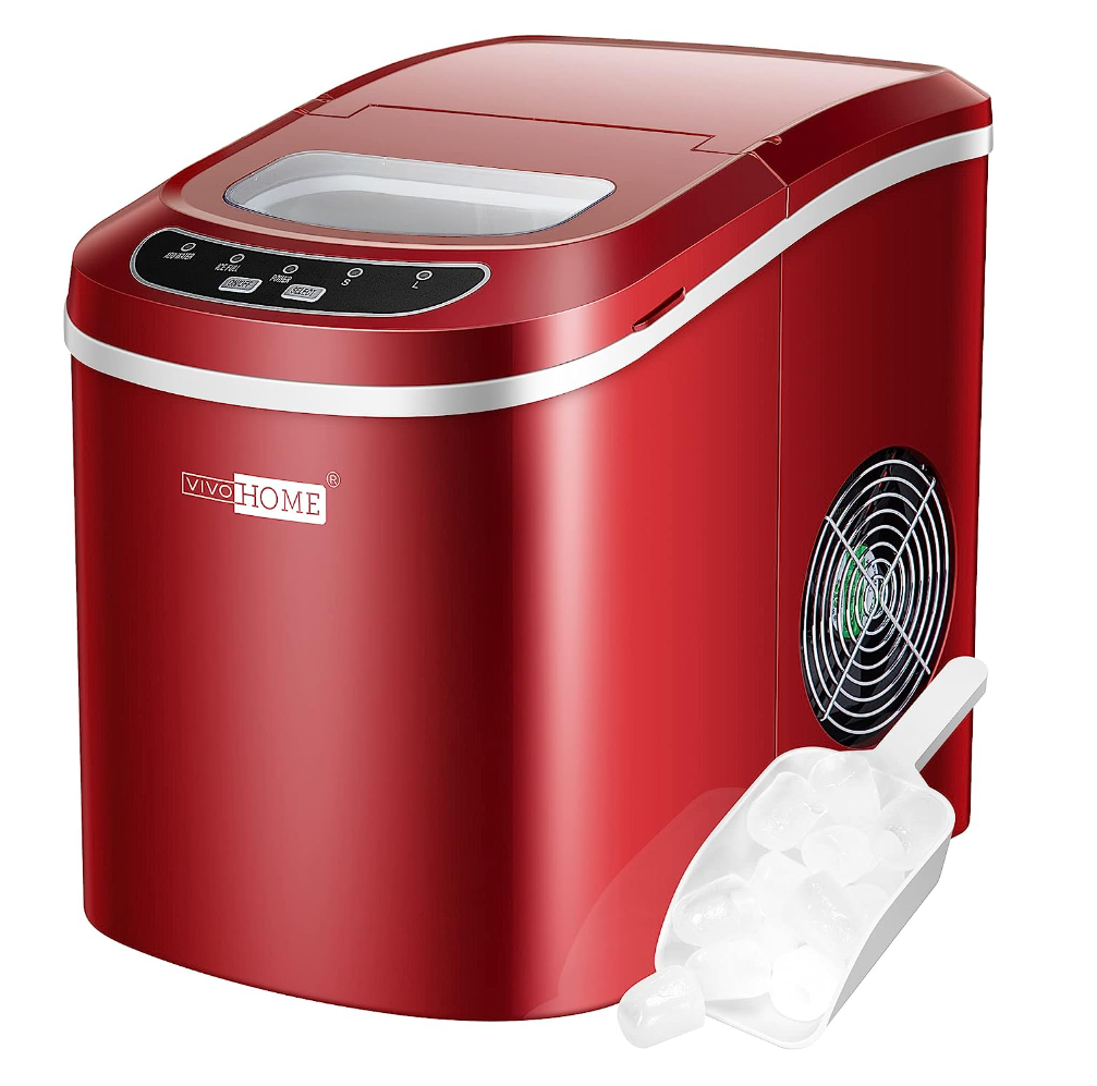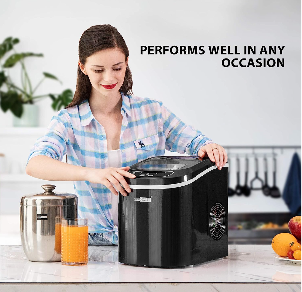 FAST FINISH & FULL MONITORING - Just plug in the power, add water and enjoy a batch of ice in about 6-10 minutes; The machine can make up to 26 lbs. bullet ice cubes within 24 hours; Get ice cubes in less time than buying them from the store; Designed with the compressor cooling system, which operates at low noise and will not disturb your normal life; See-through window on top helps to monitor the process and check the ice level