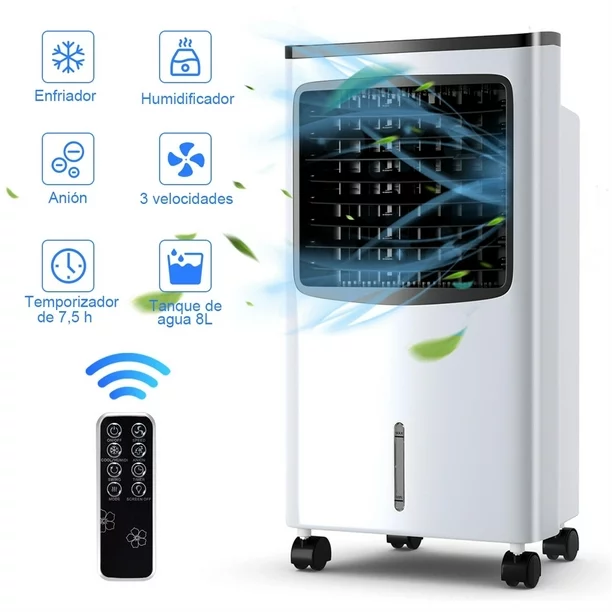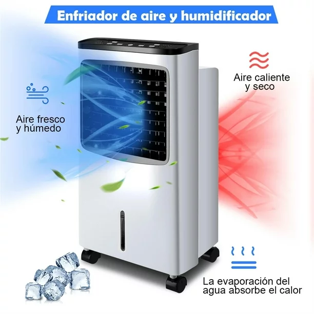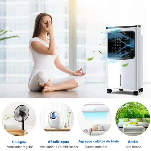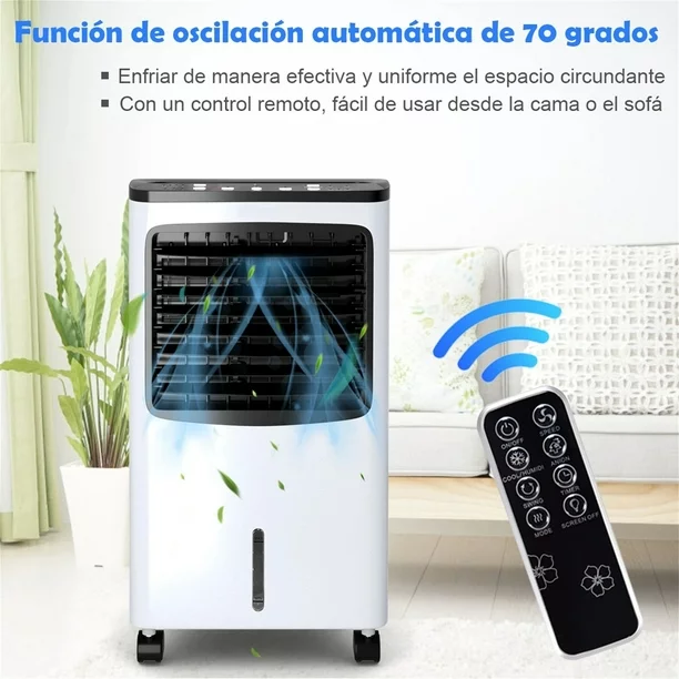 - Cuando llega el calor, necesitas algo que te refresque que sea mejor que un ventilador cuando no tienes el aire acondicionado. Con un clima cálido y seco o cuando no hay aire acondicionado, nuestro acondicionador otorga aire frío haciéndote ahorrar energía. Tiene 3 modalidades y 3 velocidades además de la función auto oscilante para utilizar como prefieres. Con una almohadilla densa, los cajones para el hielo, el tanque amplio para el agua y el mando, es indispensable para el verano. La pantalla se utiliza fácilmente y el acondicionador se enciende presionando un botón. Con una empuñadura y 4 ruedas, se desplaza fácilmente. ¡Es la elección perfecta para tu casa!