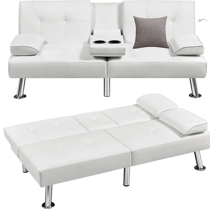 - 【Características fáciles de usar】Para facilidad de uso, este sofá convertible tiene una mesa desplegable con dos portavasos para guardar bebidas y aperitivos cuando disfrutas de tu tiempo última intervensión en él. Las dos almohadas ofrecen apoyo adicional para tu espalda baja o cabeza.